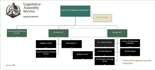 The Clerk is the chief permanent Officer of the Legislative Assembly. The Clerk is responsible to the Speaker for the administrative and other support services required for the operation of the Legislative Assembly and the support of its Members.